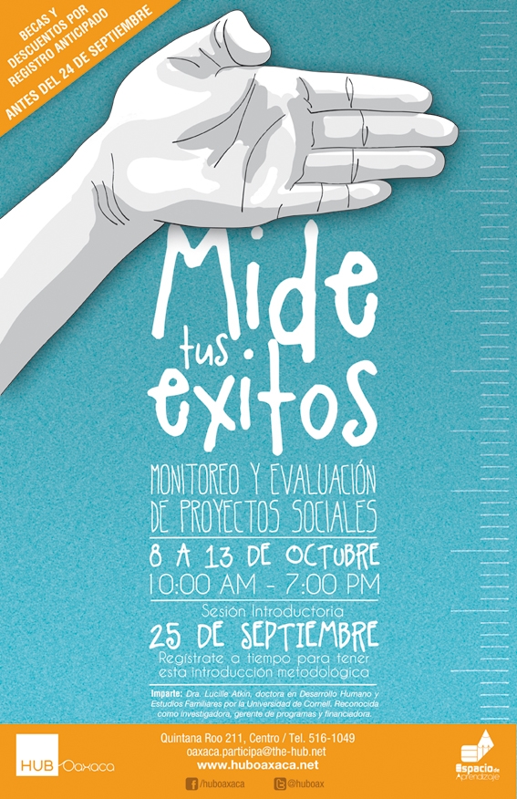 Para mayor información: http://www.huboaxaca.org/?event=taller-mide-tus-exitos-monitoreo-y-evaluacion-de-proyectos-sociales