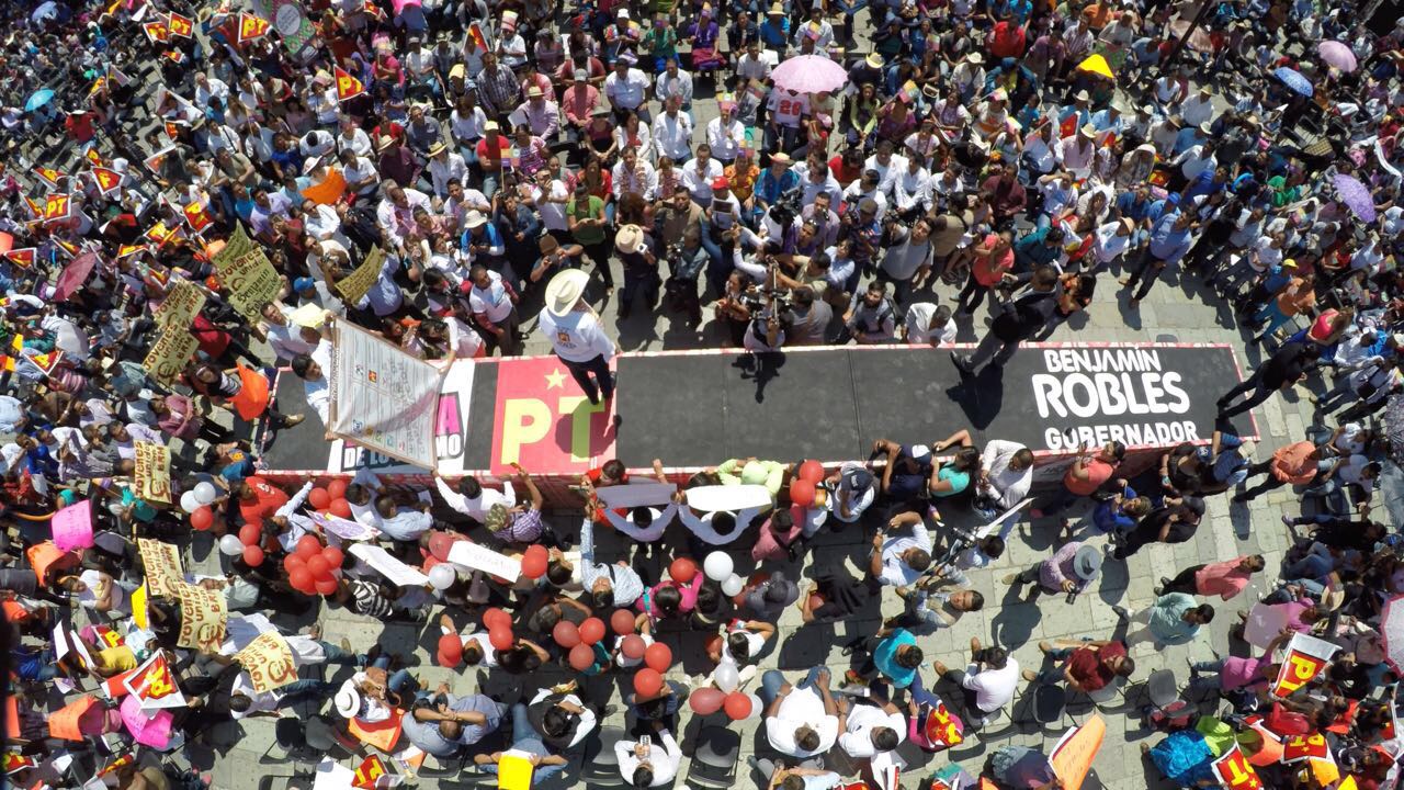 “Ya llegó la hora de que la esperanza que está dentro de nosotros surja y nos dé la fuerza para no rendirnos, para no bajar la guardia, sí vale la pena. Hoy les vengo aquí a decir: Sí, a Benjamín Robles nada lo detiene porque ustedes me han enseñado a que nada nos debe detener, ustedes me han enseñado a gritar, ¡Ya basta! Yo les digo, como mi compromiso, si me tengo que partir el alma, se los juro, me voy a partir el alma, pero me voy a convertir en el gobernador más cercano que haya existido en toda la historia de Oaxaca, ¡Vamos a ganar!, ¡Qué viva Oaxaca!, ¡Qué viva el PT, que sí quiere a Oaxaca!”, expresó.