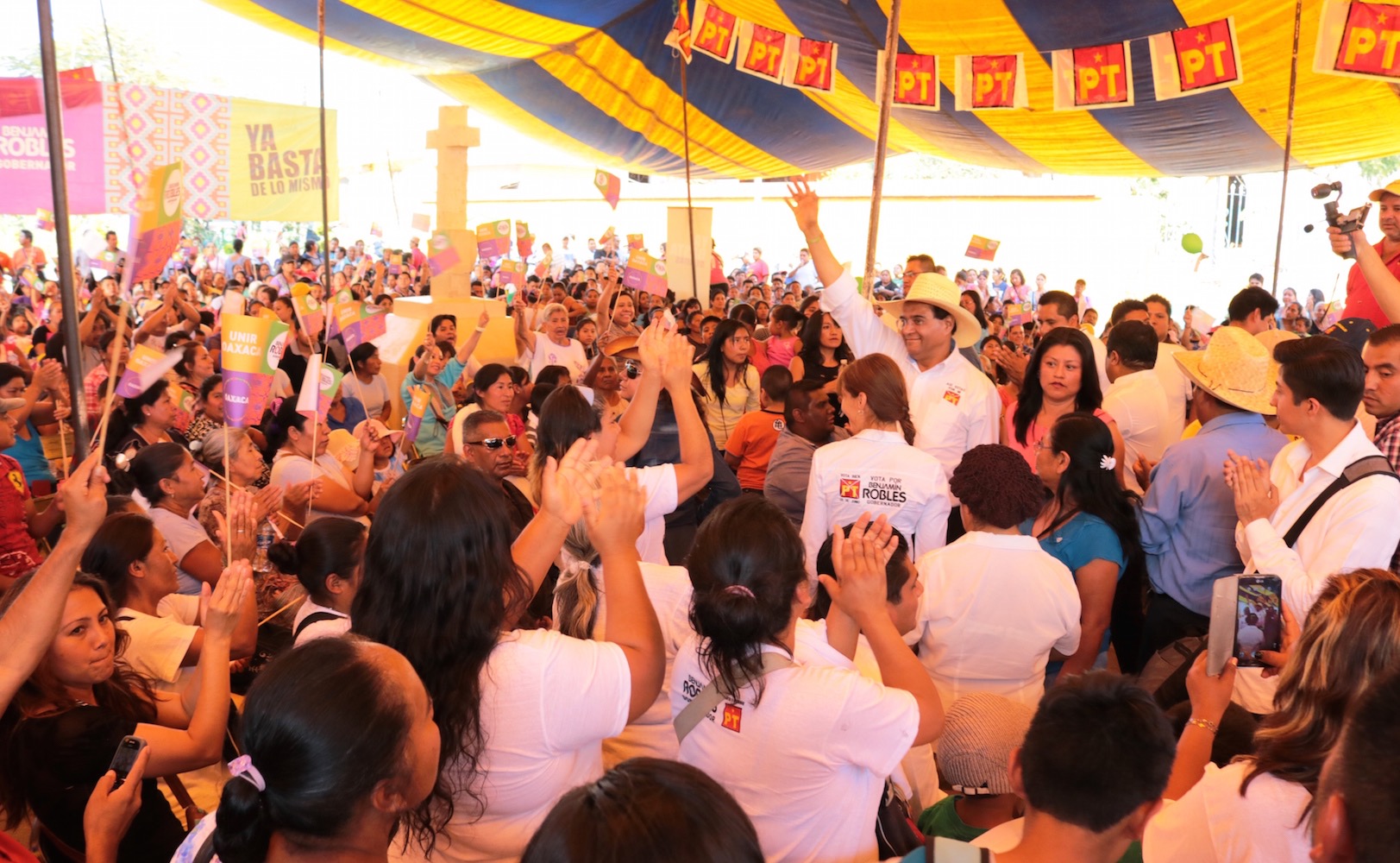 Hoy vengo a pedirles su voto, su apoyo, por el PT. Les vamos a ganar con mucha contundencia el próximo 05 de junio. Les digo, de ser necesario Benjamín Robles se va a partir el alma, pero les prometo que me voy a convertir en el gobernador más cercano que haya existido en toda la historia de Oaxaca, ese es mi compromiso ¡Qué viva Xoxo! ¡Qué viva Oaxaca! ¡Qué viva el PT!”, manifestó.
