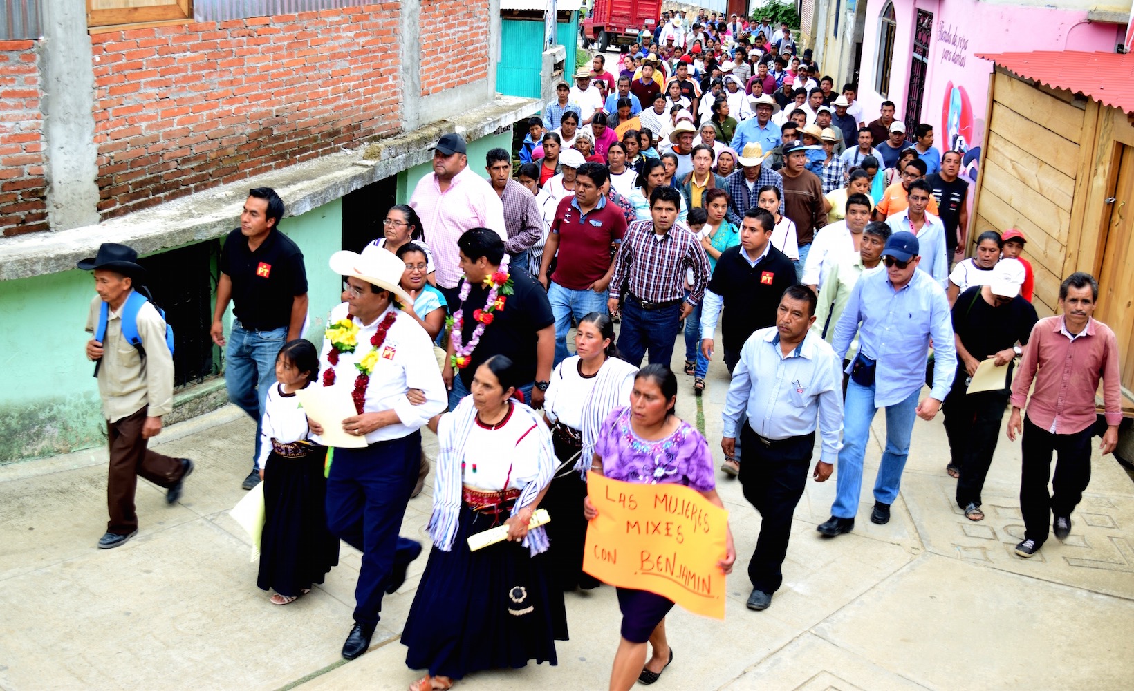 Durante los encuentros que sostuvo en estos municipios fue respaldado por representantes de las diferentes agencias municipales, liderazgos regionales, organizaciones sociales, entre ellas, Acciones con Valor, así como de los jóvenes del Centro de Capacitación Musical y Desarrollo de la Cultura Mixe (Cecam).