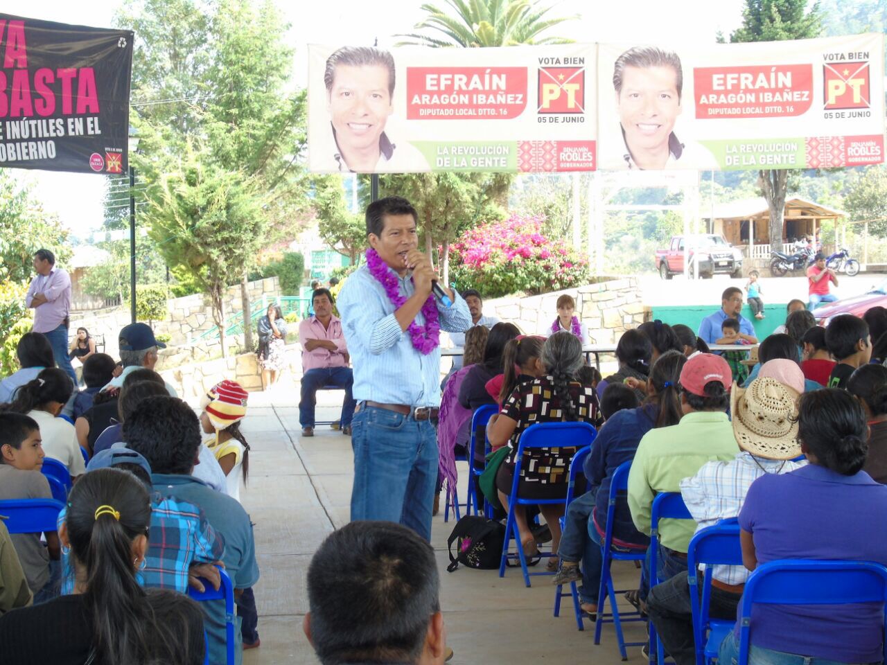 Efraín Aragón, ambientalista por más de veinte años, fue arropado por el comisariado de bienes comunales de ésta comunidad zapoteca, para anunciar el inicio de una nueva etapa en la conciencia de quienes se han cansado de los malos gobiernos y la compra de voluntades en una región azotada por la miseria y el atraso social.