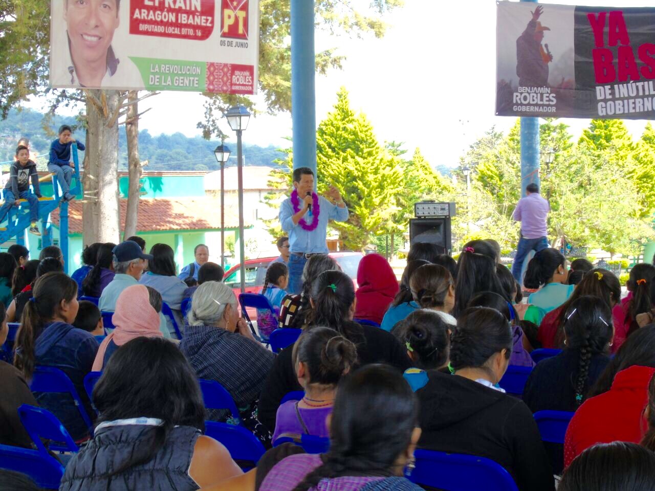 Por su parte, la contadora Maribel Martínez Ruíz, esposa de Benjamín Robles Montoya, candidato a titular del ejecutivo estatal, quien acompañó a Efraín Aragón en el inicio de campaña, señaló, que llegó el momento de poner en marcha el Hospital de Santa María Lachixio, que desde años se encuentra en obra negra y carece de medicamentos para atender debidamente a mujeres que paceden los traslados a San Pablo Huixtepec o Tlacolula para recibir atención, así también compartió el plan de gobierno de Robles Montoya.