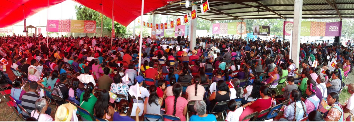 Con el respaldo de hombres y mujeres provenientes de Ayoquezco de Aldama, Santa Inés del Monte, San Pablo Huixtepec y más de 10 comunidades aledañas, en su mayoría donde la gente se dedica al campo, Benjamín Robles, acompañado de su esposa Maribel Martínez, pactó con campesinas y campesinos que tendrán a un gobernador cercano a ellos, que les escuche y atienda sus necesidades.