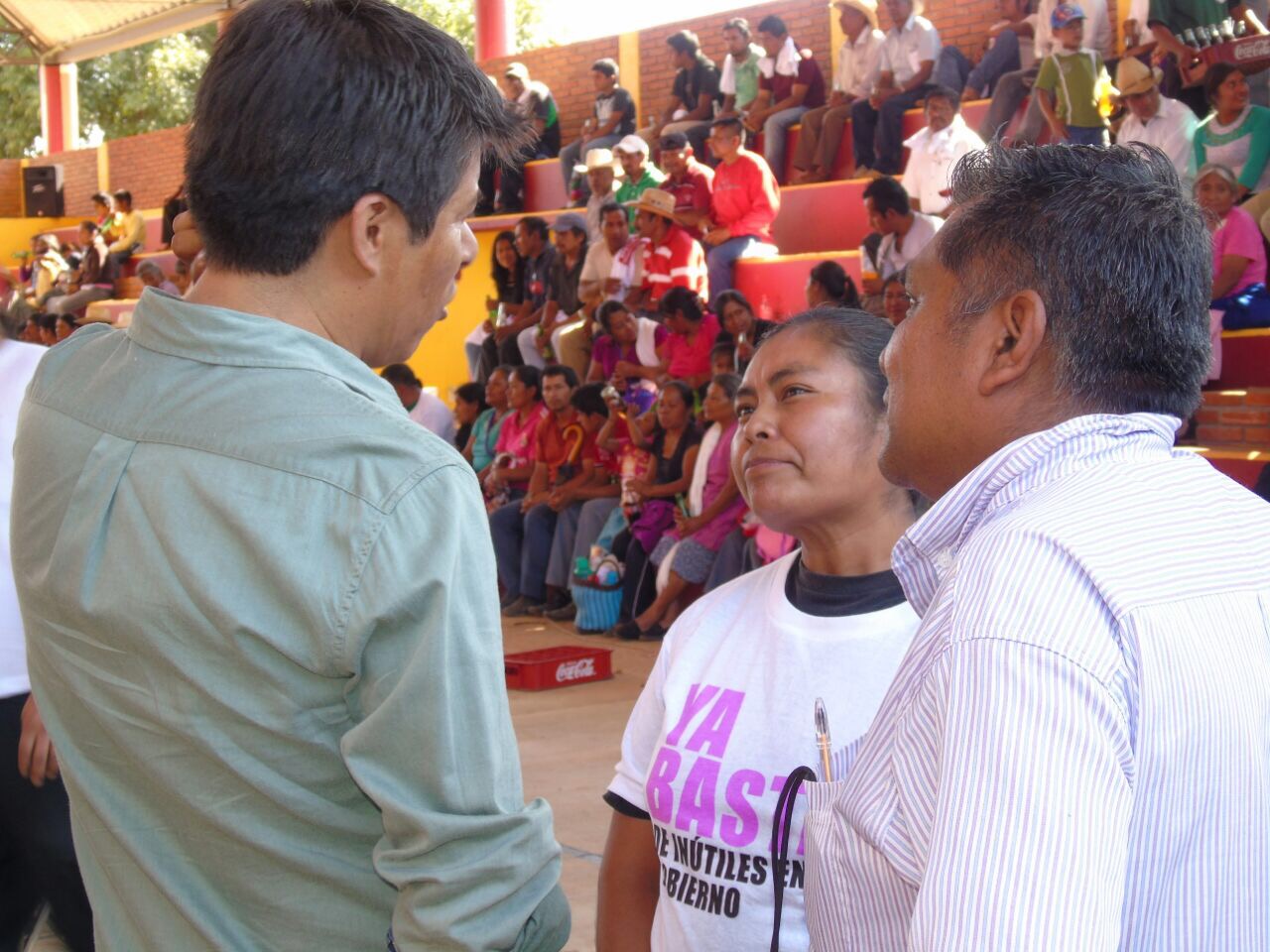 En cada intervención, las autoridades de las diversas comunidades que lo acompañaron, resaltaron el desprecio que sufren los pueblos rurales indígenas que se localizan en el sur-sureste de Oaxaca, por parte de la élite de ricos que destruyen los bosques, los manantiales y despojan de sus tierras a los campesinos, comuneros y ejidatarios.