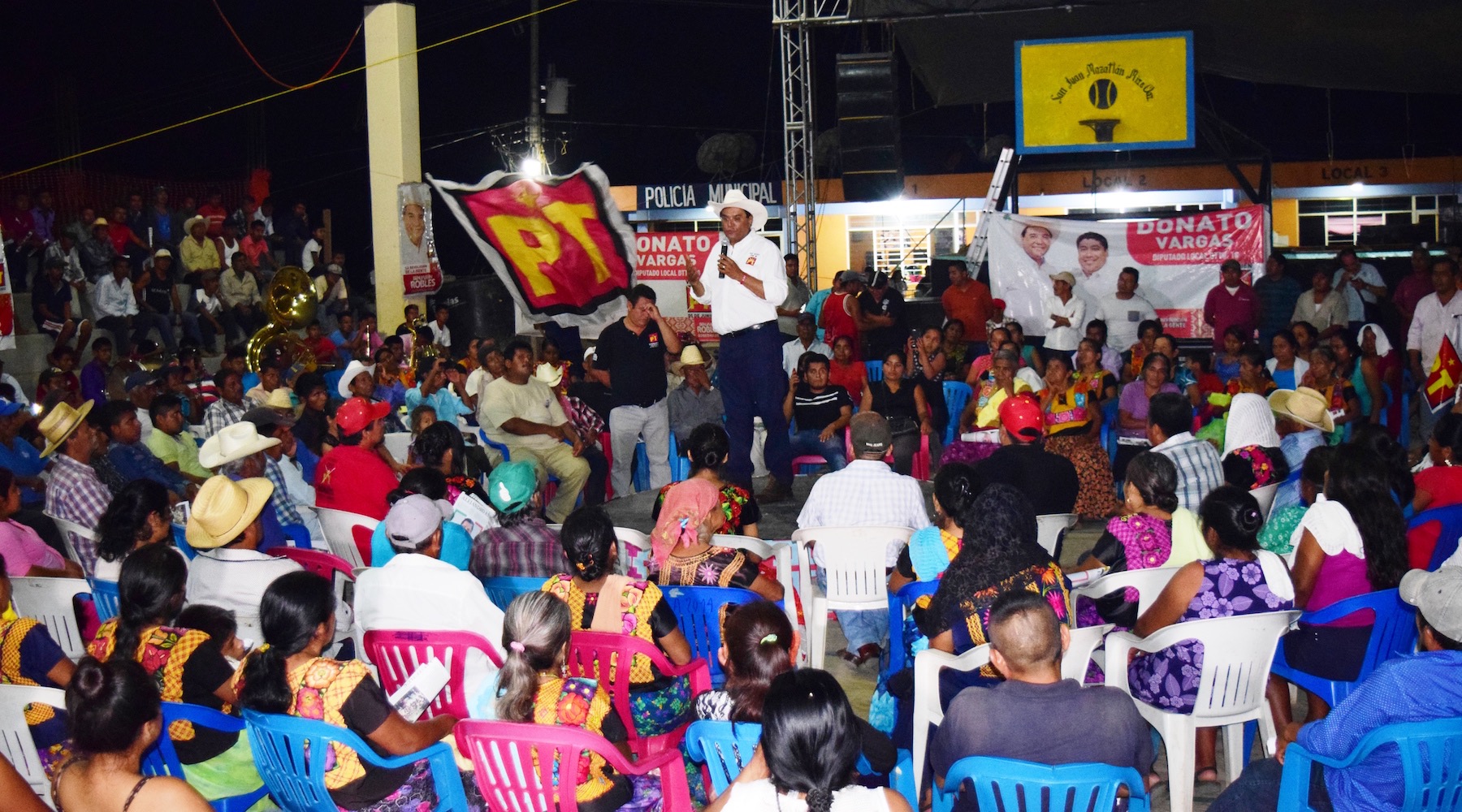 Como parte de sus cierres de campaña regionales, Benjamín Robles Montoya visitó agencias de San Juan Lalana y de Santiago Yaveo, así como la cabecera municipal de San Juan Mazatlán, acompañado del candidato a diputado local por el PT en el Distrito 10 Mixe-Choapam, Donato Vargas Jiménez, y del suplente José Quiñónez Herrera.