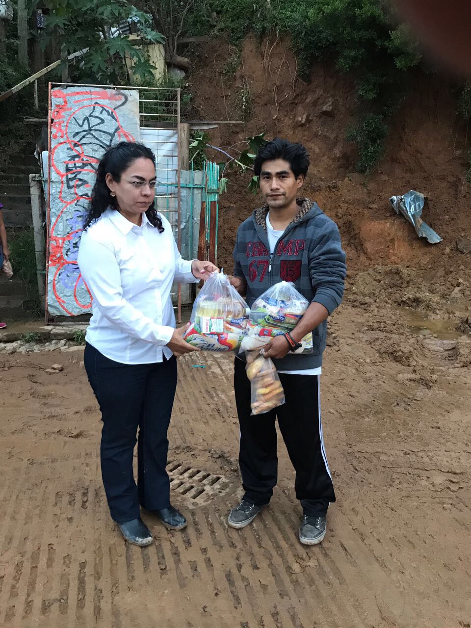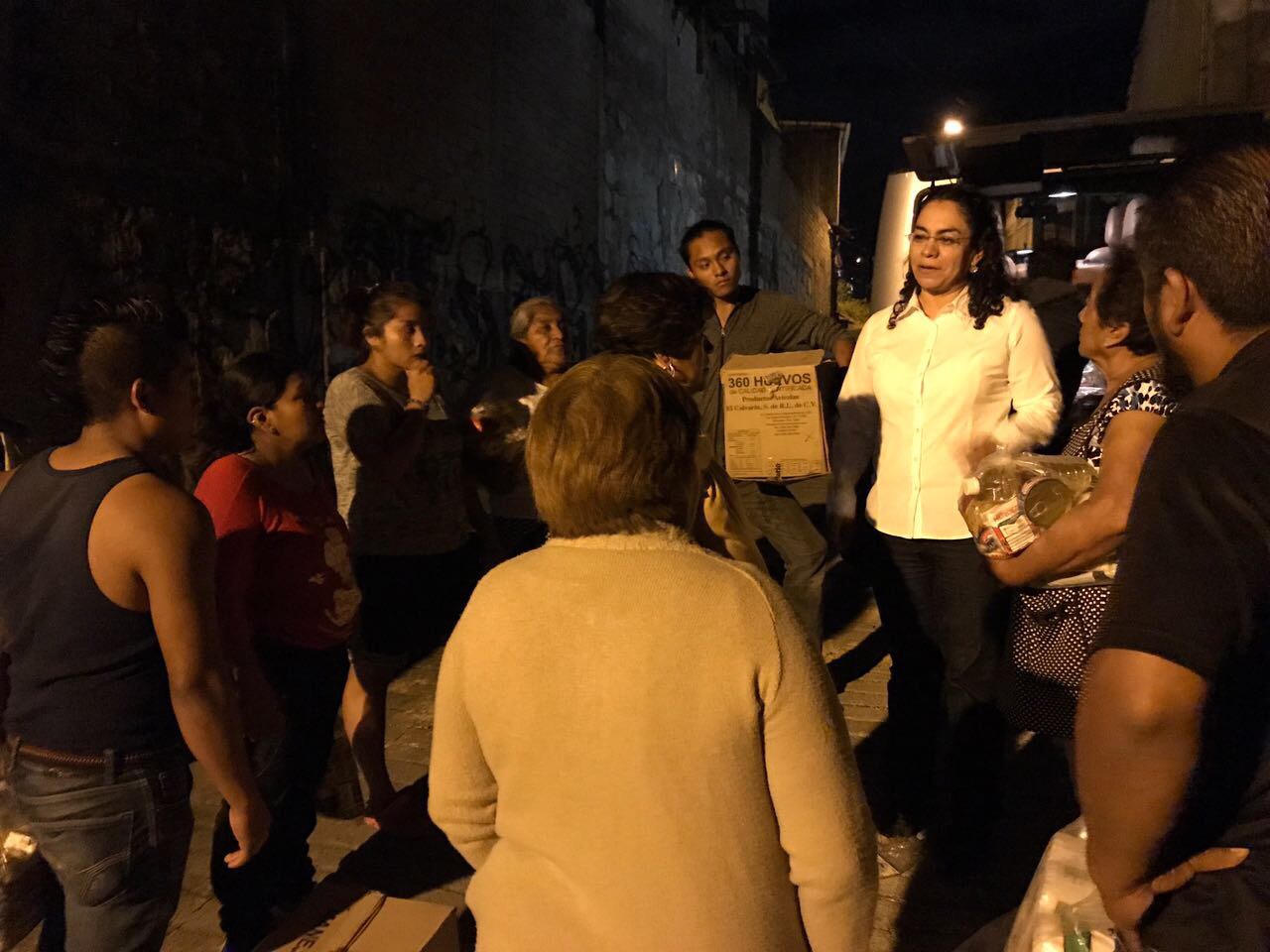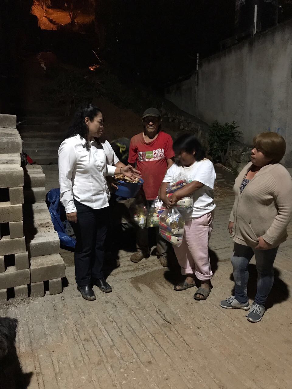 Legisladora local Laura Vignon Carreño la noche del sábado 9 de septiembre entrego despensas a las personas que sufrieron afectaciones por las lluvias en la agencia de San Juan Chapultepec.