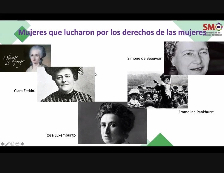 A través de un taller digital impartido por la facilitadora de la SMO, Seydi Mariana Silva González, trabajadoras y trabajadores de Administración hicieron un análisis de aquellas garantías que han sido ganadas por el sector femenino a lo largo de la historia y la importancia de reconocer y hacer valer estos derechos.