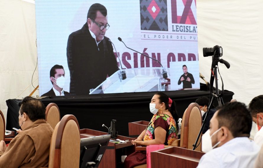 San Raymundo Jalpan, Oax. 21 de enero de 2022.- Ante el Pleno del Congreso del Estado de Oaxaca, la diputada Eva Diego Cruz y el diputado Samuel Gurrión Matías, ambos del Partido Verde Ecologista de México (PVEM), presentaron la iniciativa para modificar la Ley de Movilidad estatal.
