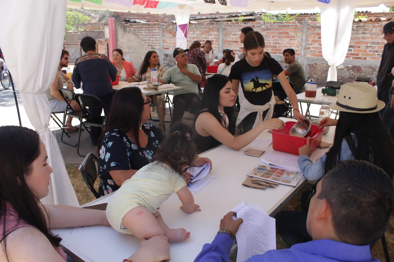 El domingo, la fiesta llegó a Temacapulín, Cañadas de Obregón, que se llenó de diversión y alegría, donde niñas y niños, acompañados de sus familiares, participaron en talleres para la creación de papalotes, papel picado, dibujo y estampado, artes circenses, técnicas de bordado, elaboración de redes de pesca, creación de contenidos para radio comunitaria, entre otros.