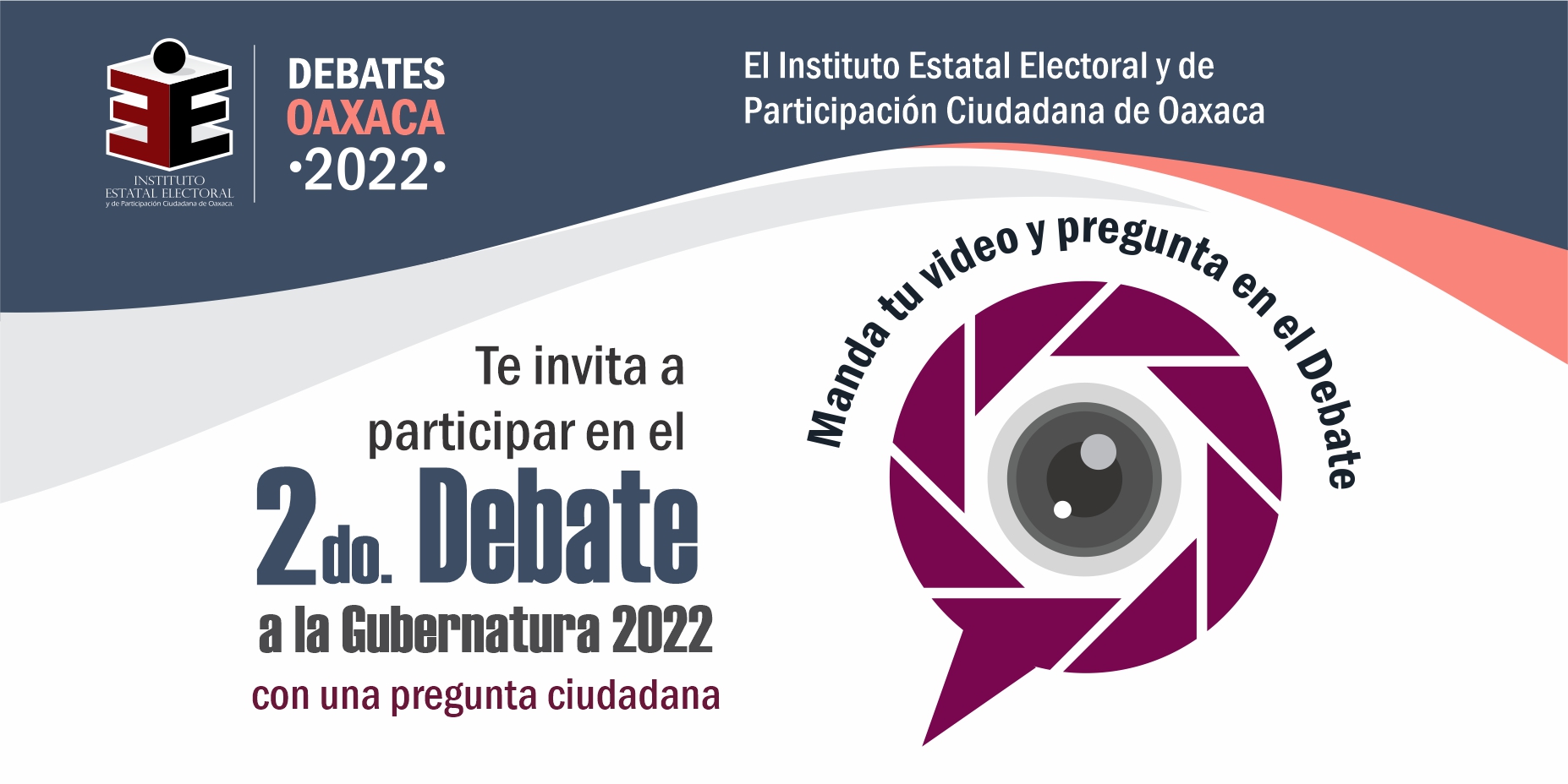 El Instituto Estatal Electoral y de Participación Ciudadana de Oaxaca (IEEPCO), a través de la Comisión Temporal de Comunicación, aprobó la convocatoria “Manda tu video y pregunta en el debate” para la obtención de las preguntas ciudadanas que serán utilizadas en el Segundo Debate entre candidatas y candidatos a la gubernatura del estado, organizado por el Instituto Estatal Electoral y de Participación Ciudadana de Oaxaca para el Proceso Electoral Ordinario 2021-2022.