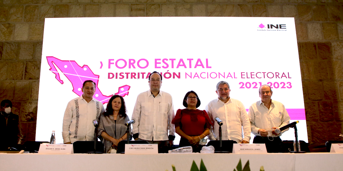 El Foro Estatal de Distritación Electoral se llevó a cabo en las 32 entidades federativas a fin de propiciar con un espacio de reflexión sobre los aspectos más relevantes que intervienen en dicho proceso; en Oaxaca estuvo encabezado por el consejero electoral del INE, Presidente de la Comisión del Registro Federal de Electores, Ciro Murayama Rendón, René Miranda Jaimes, Director del Registro Federal de Electores, expertas y expertos nacionales en materia demográfica y geográfica, así como el vocal ejecutivo del INE Oaxaca, Edgar Humberto Arias Alba.