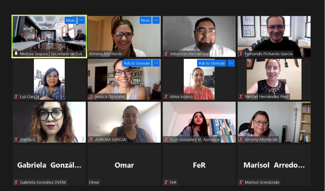 Representantes del programa Cultura Comunitaria de la Secretaría de Cultura del Gobierno de México se reunieron virtualmente con la titular de la Secretaría de Cultura de Nuevo León, Melissa Segura Guerrero, con el fin de generar vínculos y colaboración entre ambas instituciones a favor de la cultura comunitaria en el estado.