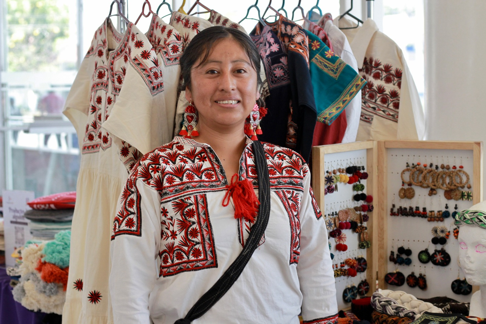 “Las blusas, por los bordados, son las que más se reconocen y buscamos dar a conocer otras prendas que se realizan con otras técnicas con gabanes, rebozos tejidos en telar y teñidos”, indicó Mayra Díaz.
