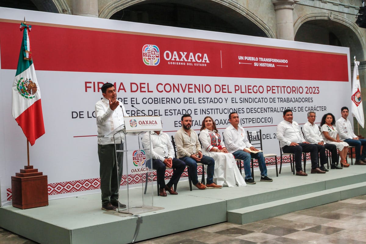 Este acuerdo en el que el Gobernador Salomón Jara Cruz signó como testigo de honor, permitirá el incremento de 4.5 por ciento en el salario base y 3.5 por ciento en Previsión Social Múltiple, en beneficio de más de 14 mil trabajadores.