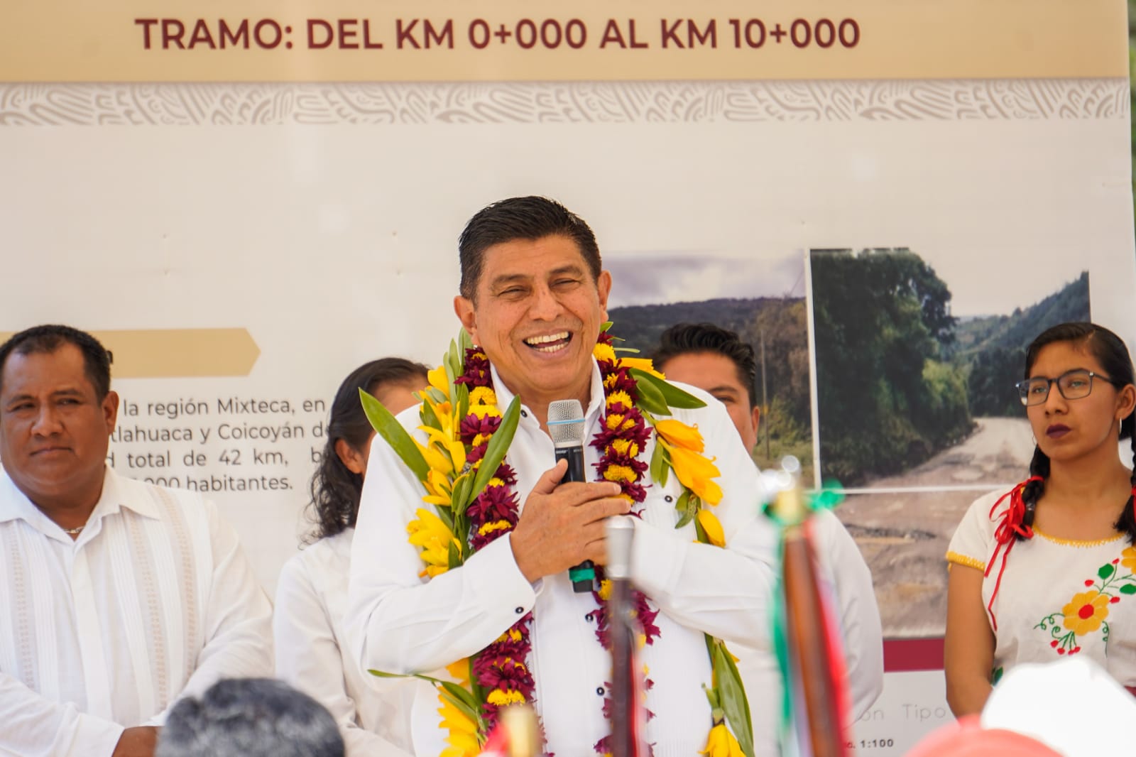La infraestructura carretera que se localiza en la región Mixteca tendrá una longitud de 42 kilómetros y consistirá en la pavimentación del camino que comprende obras de drenaje, construcción de la base hidráulica y señalamientos.