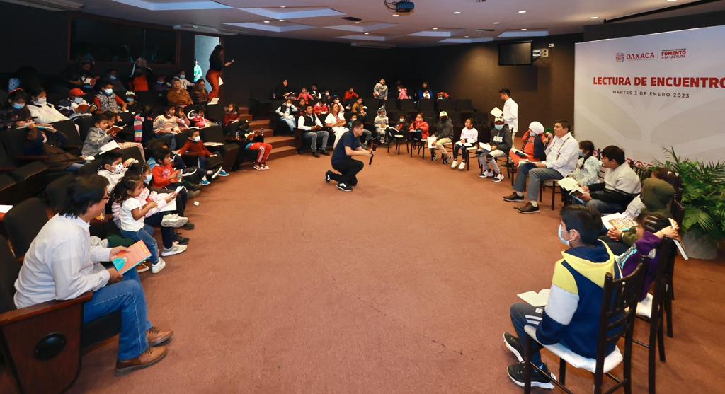 Para avanzar en este propósito, dijo, el Mandatario estatal ha encabezado esta iniciativa con la niñez y juventud oaxaqueña mediante encuentros literarios cada mes, que permitan aumentar el promedio de lectura en Oaxaca, cambiando así el indicador actual de menos de un libro al año.