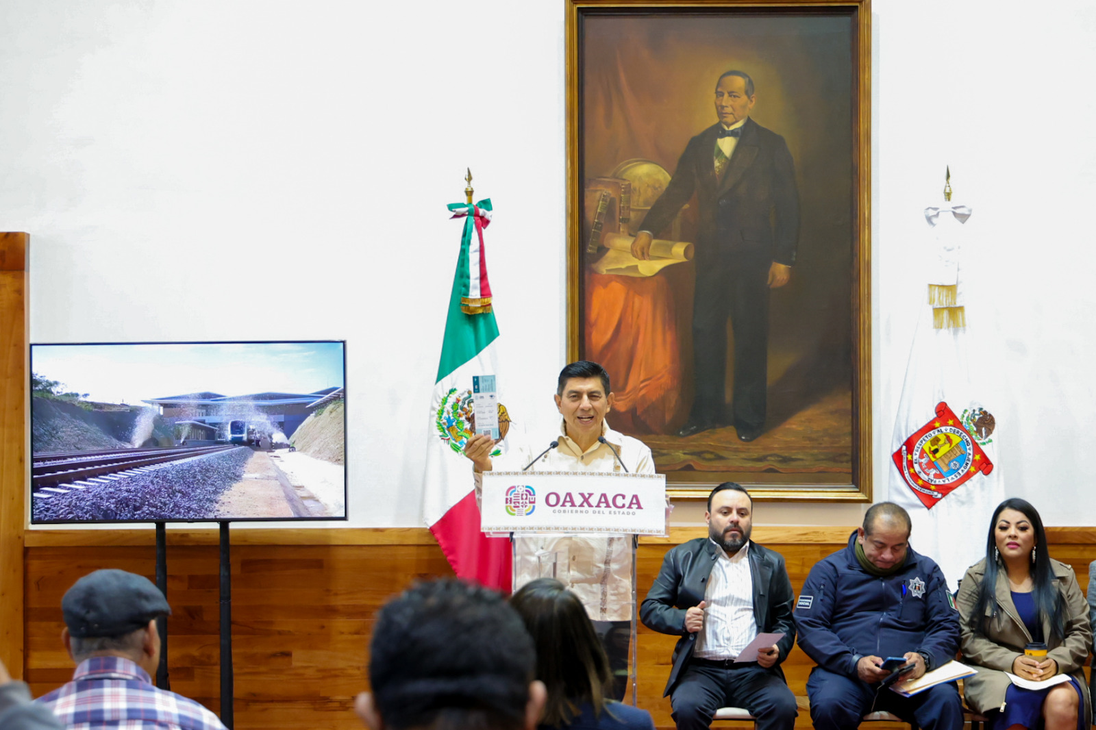 Oaxaca de Juárez, Oax. 18 de diciembre de 2023. “Vivimos un momento estelar en este proceso de transformación”, expresó el Gobernador Salomón Jara Cruz al confirmar la inauguración del Tren Interoceánico que encabezará el Presidente Andrés Manuel López Obrador el próximo viernes.