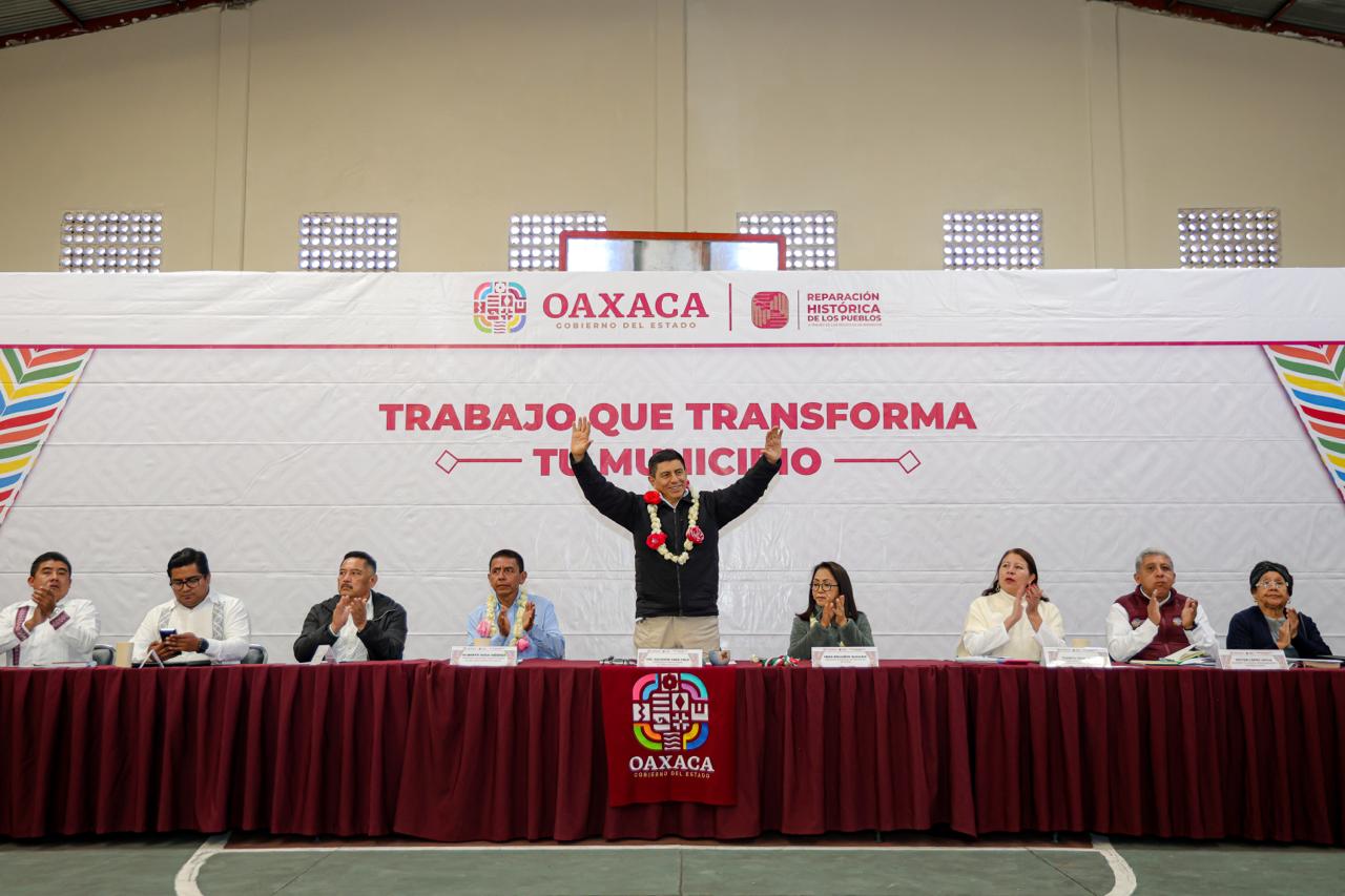 El Gobernador Salomón Jara Cruz, junto con la Presidenta Honoraria del Sistema DIF Oaxaca, Irma Bolaños Quijano, anunció las acciones que se realizarán en esta comunidad de la Sierra de Juárez