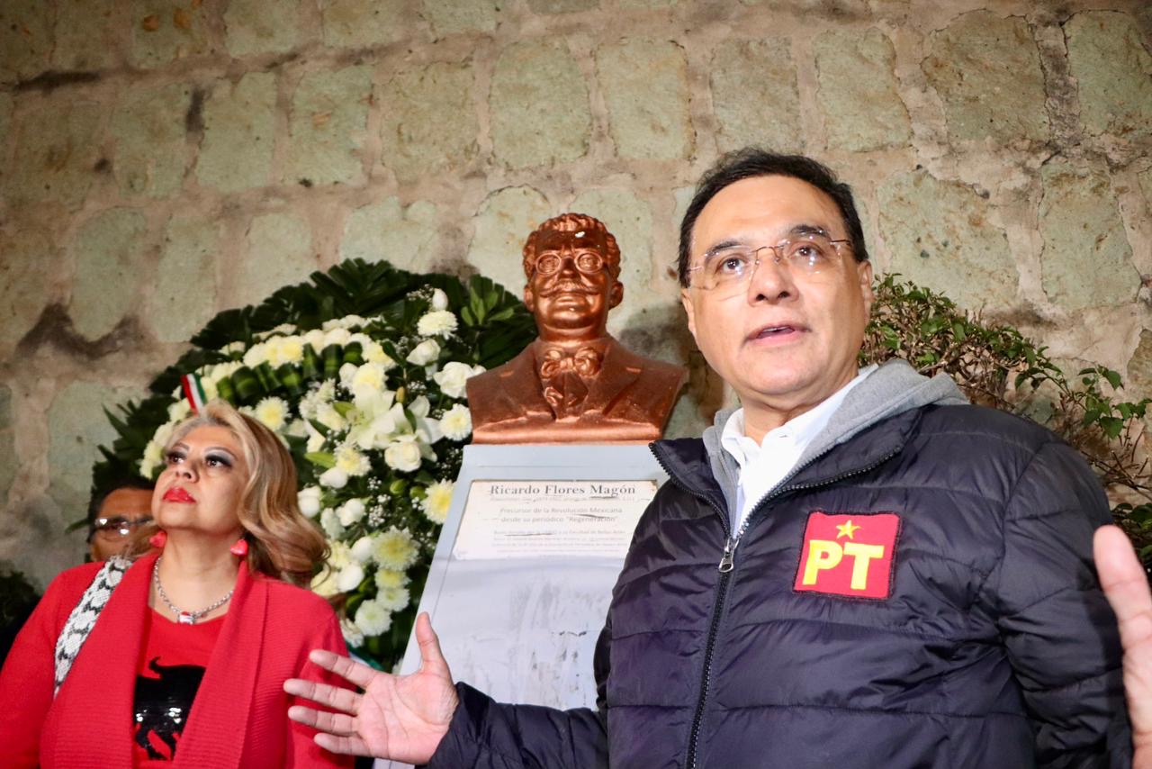 Lo hizo depositando una ofrenda floral en memoria del ilustre oaxaqueño Ricardo Flores Magón, recordando que la transformación del Pueblo sucede cuando se opta por lo bueno, como el prócer nacional enseñó desde las letras y la acción.