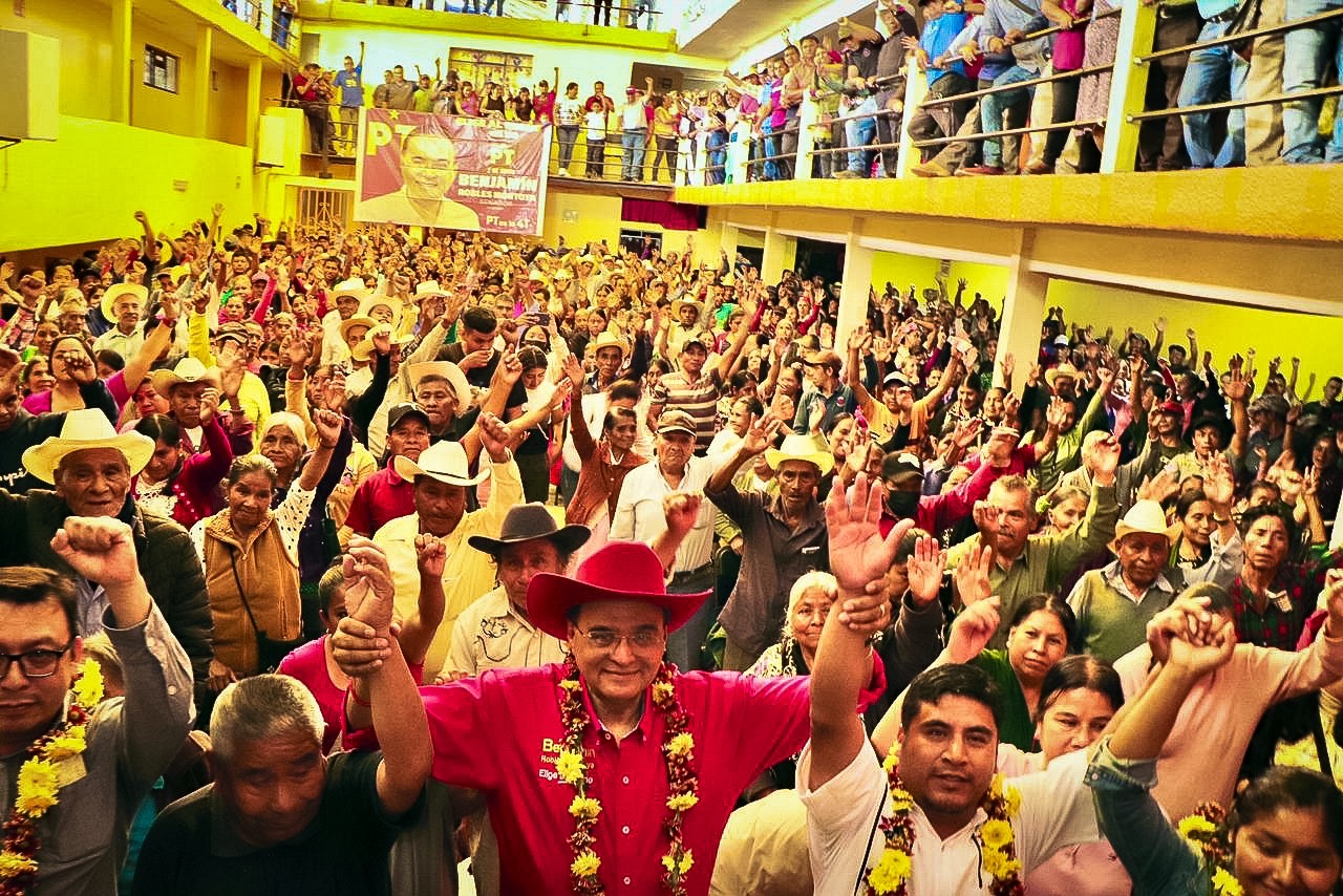 Y sé que Claudia Sheinbaum Pardo se va a convertir en la primera mujer presidenta de este país y que el pueblo de Huautla se deje guiar por la estrella amarilla. El pueblo manda, y el PT en Huautla, en la elección al Senado elijan a El Bueno, voten por Benjamín Robles, voten por el Partido del Trabajo”, expresó.