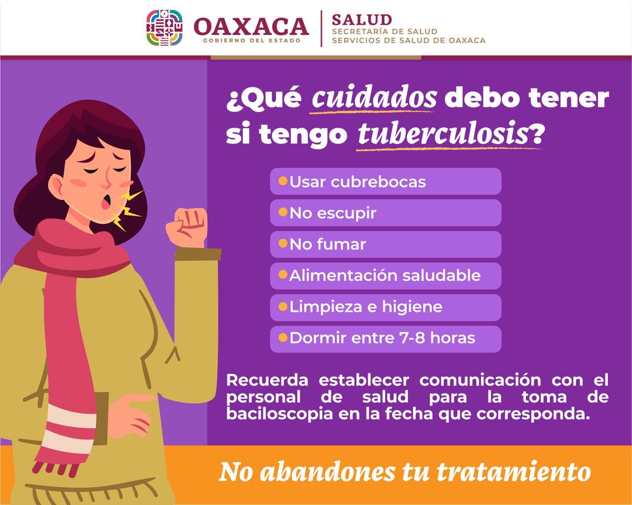 En caso de presentar tos con flemas durante dos semanas o más, fiebre, debilidad, pérdida de peso y del apetito, sudoración vespertina o nocturna, los SSO recomiendan a la población acudir al centro de salud para descartar o confirmar el padecimiento e iniciar el tratamiento de manera oportuna.