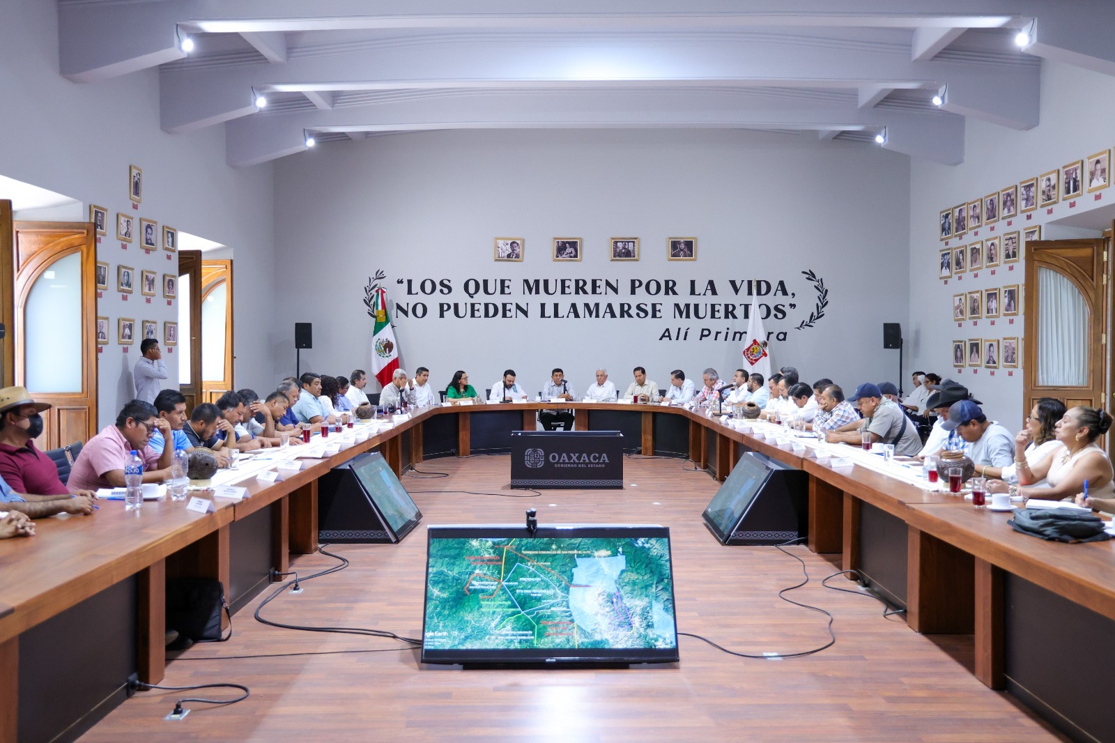 La mesa fue encabezada por el Gobernador del Estado, Salomón Jara Cruz y la subsecretaria de Desarrollo Democrático, Participación Social y Asuntos Religiosos de la Secretaría de Gobernación (Segob), Iris Mariana Rodríguez Bello, así como Luis Hernández Palacios, titular de la Procuraduría Agraria.