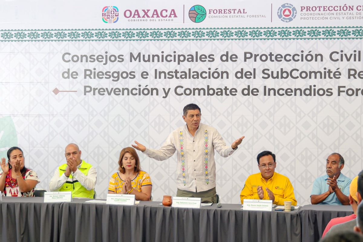 En su calidad de presidente del Subcomité, el Gobernador Salomón Jara Cruz encabezó la sesión en la que participaron autoridades municipales de la región, representantes de Bienes Comunales y titulares de la Coordinación Estatal de Protección Civil y Gestión de Riesgos (CEPCyGR), la Promotoría de Desarrollo Forestal de la Comisión Nacional Forestal (Conafor) y la Dirección General del Hangar del Estado.