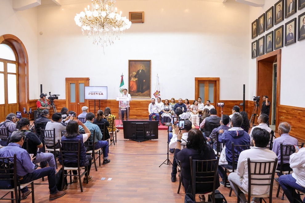 Oaxaca de Juárez, Oax. 8 de abril de 2024.- En el marco de la conferencia de prensa encabezada por el Gobernador Salomón Jara Cruz, el Gobierno de Oaxaca reiteró su respaldo a la decisión del Presidente de México Andrés Manuel López Obrador, de romper relaciones diplomáticas con Ecuador.