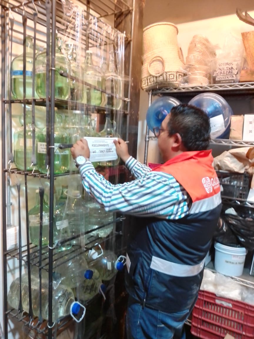 En esta ocasión se aplicó una medida de aseguramiento de producto por falta de etiquetado en el envase de bebidas alcohólicas y en la máquina de hielos por no cumplir el ciclo correcto de purificación de agua.