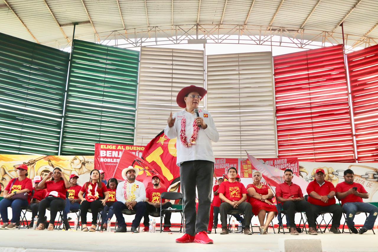 Por eso les pido, que en la elección del Senado elegir a ‘El Bueno’, elegir a Benjamín Robles, ¡votar por el Partido del Trabajo. Como nos dijo López Obrador, ¡amor al Pueblo!, ese es el encargo y el Pueblo merece vivir mejor, ¡ya basta de tanta corrupción!, ¡ya basta de tanta impunidad!, ¡es la hora del Partido del Trabajo!, ¡es la hora del Pueblo!, y estamos con el Pueblo, ¡Qué viva San Pedro Mixtepec!”, enfatizó el candidato.