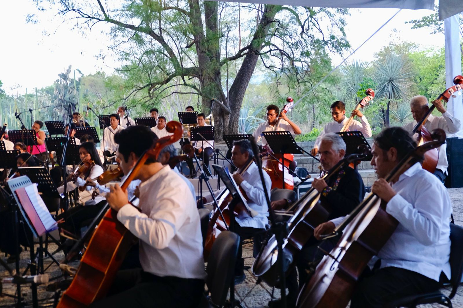 La Orquesta Sinfónica de Oaxaca fue la encargada de amenizar el primer concierto de Tardes de Jardín, proyecto que en esta primera etapa realizará una actividad cultural mensual, de manera gratuita organizada por la Secretaría de las Culturas y Artes.