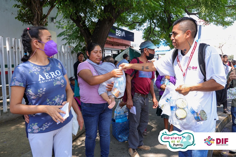 Oaxaca de Juárez, Oax. 3 de junio de 2024.- Ante las altas temperaturas que se registran en la capital oaxaqueña, el Sistema para el Desarrollo Integral de la Familia (DIF) Oaxaca activó el plan “Hidratarte es el Punto”, que incluye la entrega de paquetes de hidratación a niñas, niños, personas adultas mayores, con enfermedades crónico degenerativas, en situación de calle y migrantes.