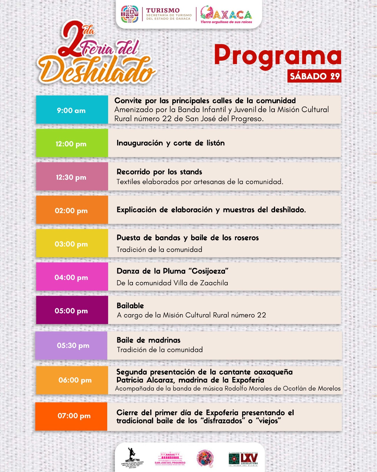 • La Sectur Oaxaca, autoridades municipales y la Asociación de Artesanas del Progreso Deshilando Lienzos invita a disfrutar de la actividad que ofrecerá un amplio programa cultural