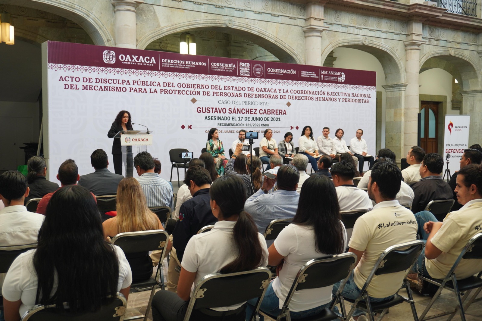 Oaxaca de Juárez, Oax. 17 de junio de 2024.- El Gobierno del Estado de Oaxaca ofreció una disculpa pública a familiares del periodista Gustavo Sánchez Cabrera, asesinado el 17 de junio del 2021.