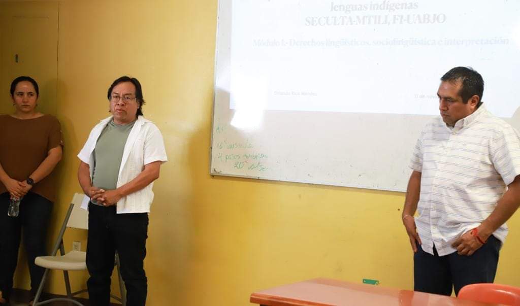 Esta actividad realizada en coordinación con la Universidad Autónoma Benito Juárez de Oaxaca (UABJO) a través de la Maestría en Traducción e Interpretación de Lenguas Indígenas de la Facultad de Idiomas, tiene el objetivo de fortalecer las competencias de interpretación especializada de hablantes de lenguas indígenas para facilitar el acceso a los servicios y programas públicos, con pertinencia intercultural, de género y otras especificidades culturales de Oaxaca.