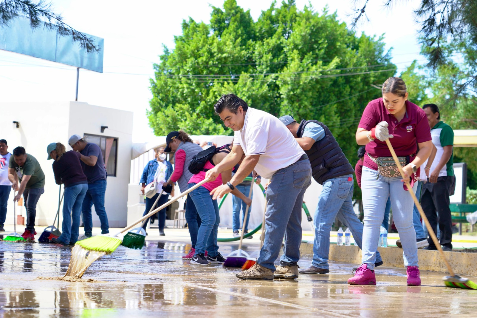 Oaxaca de Juárez, Oax., 23 de junio de 2024.- El Sistema Operador de los Servicios de Agua Potable y Alcantarillado (Soapa) participó en el Tequio Bienestar convocado por el Gobierno del Estado para coadyuvar en la limpieza y desinfección del Hospital de la Niñez Oaxaqueña (HNO) Doctor Guillermo Zárate Mijangos, a raíz del encharcamiento que sufrió por las lluvias registradas en días pasados.
