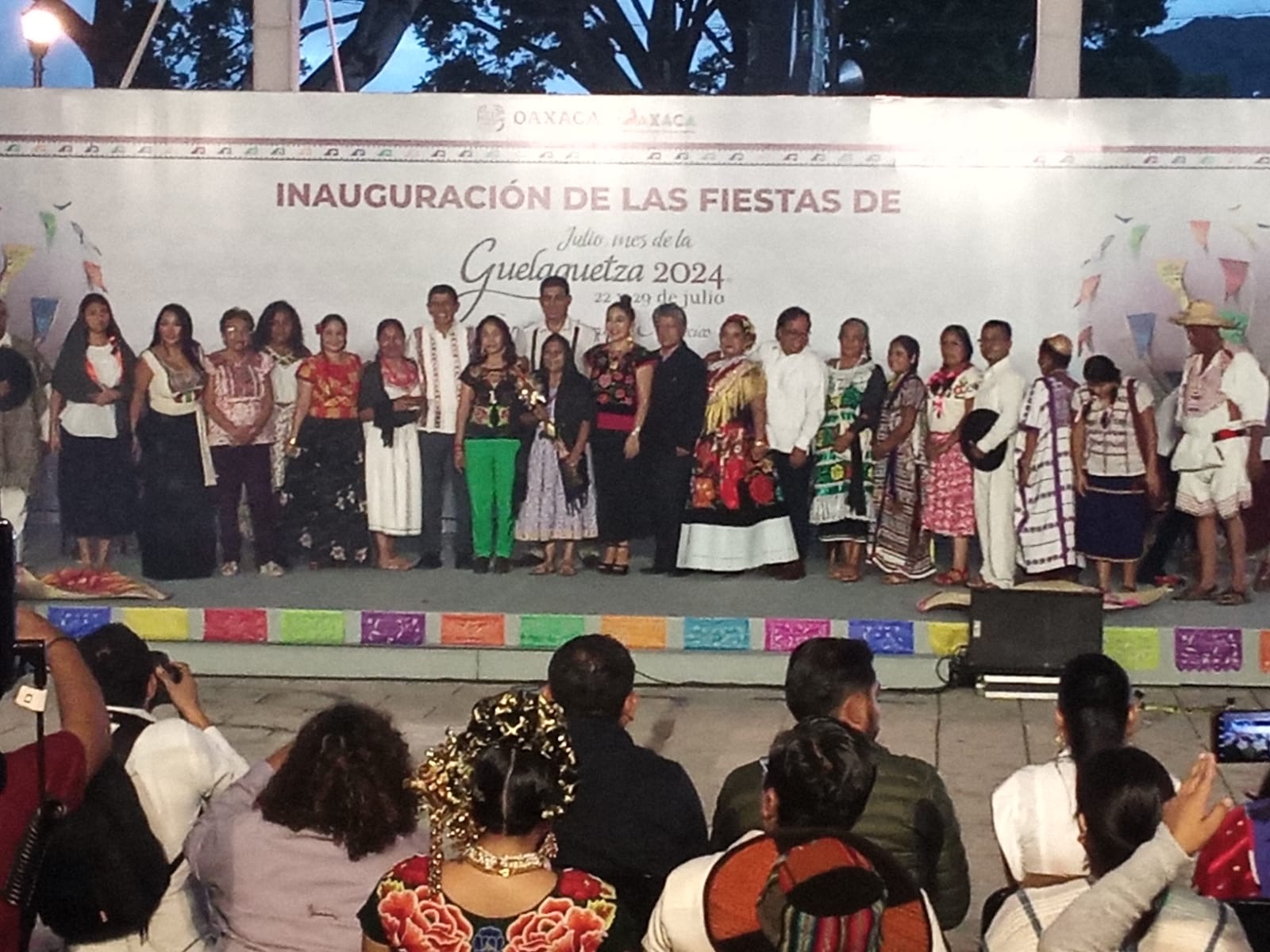 En consonancia con los dichos del gobernador, el escenario en esta ocasión en el que se dio el arranque oficial de operaciones de la legendaria fiesta, en la Plaza de la Danza, no estuvo ocupado por políticos, sino por 17 mujeres y hombres representantes de diferentes etnias y municipios de Oaxaca, quienes fueron invitados por el gobernador a tomar téjate durante la ceremonia.