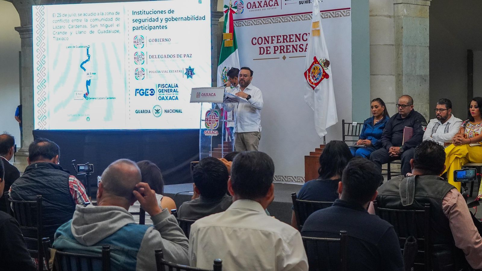 Oaxaca de Juárez, Oax. 30 de julio de 2024.- Como parte de las acciones de la Mesa de Inteligencia Agraria la Secretaría de Gobierno (Sego) hizo una verificación en la zona de conflicto entre Lázaro Cárdenas, San Miguel el Grande y Llano de Guadalupe Tlaxiaco, donde ya se mantenía presencia de instancias de seguridad, además de haber tenido mesas de atención para dirimir la problemática, afirmó el encargado de la política interna en la entidad, Jesús Romero López.