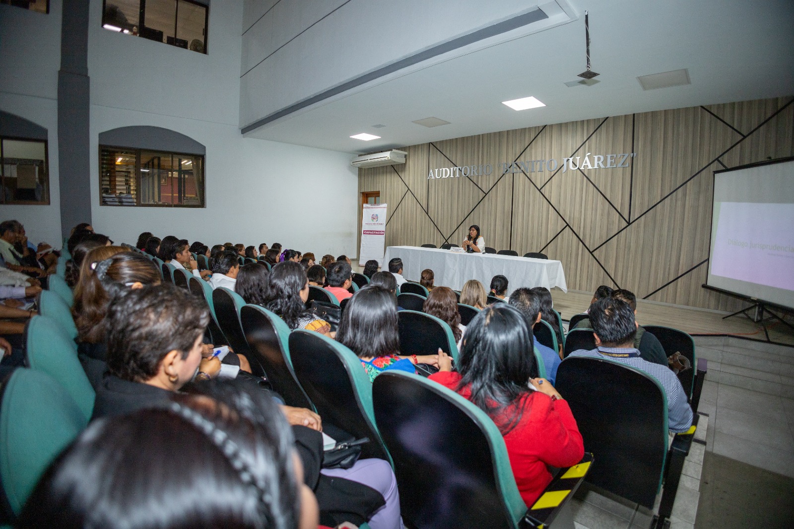 Las actividades realizadas en el auditorio “Benito Juárez” de los Juzgados Civiles y Familiares del Centro de Oaxaca de Juárez, fueron dirigidas a personas defensoras públicas con el objetivo de actualizar y reforzar sus conocimientos sobre la defensa intercultural.