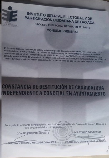 Oaxaca, Oax. 7 de junio de 2016. Para la Legislatura...